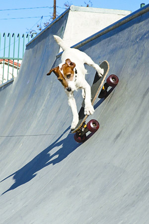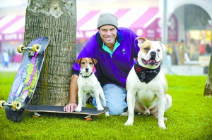 6歲的杰克拉塞爾犬“Auggie”和1歲的美國(guó)斗牛犬“Popeye”都是滑板高手。近日,它們?cè)谥魅薕mar Muller的帶領(lǐng)下在美國(guó)洛杉磯海灘大秀滑板技藝。