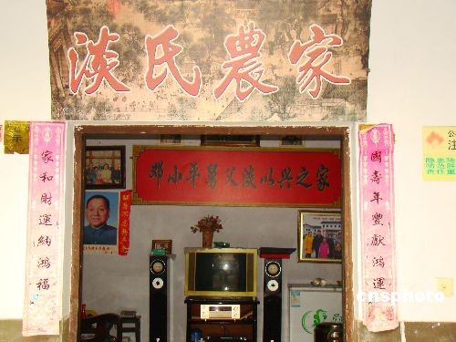 改革開放三十年來,中國改革開放總設(shè)計師鄧小平故里四川廣安牌坊村發(fā)生了巨大變化。牌坊村黨支部書記鄧治君說,目前牌坊村正在成為集教育、觀光、會議、休閑為一體的紅色旅游與現(xiàn)代農(nóng)業(yè)旅游基地。圖為鄧小平舅父談以興家開設(shè)的農(nóng)家樂,名為“淡氏農(nóng)家”。中新社發(fā) 王萌 攝