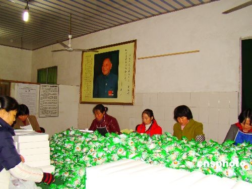 圖為村民蔣超經(jīng)歷了改革開放從無到有的整個(gè)時(shí)代變遷,依靠經(jīng)驗(yàn)和技術(shù)發(fā)展起了“鄧家鹽皮蛋”加工廠,工人正在包裝鹽皮蛋。