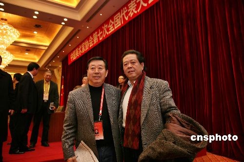 新當(dāng)選的中國(guó)美協(xié)主席劉大為(左)和新當(dāng)選的中國(guó)美協(xié)中國(guó)美協(xié)秘書(shū)長(zhǎng)劉健。