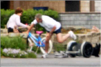 布什從電動滑板車上摔倒。