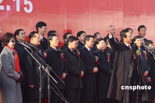 圖為海峽兩岸關(guān)系協(xié)會(huì)會(huì)長(zhǎng)陳云林在啟航儀式上致辭。