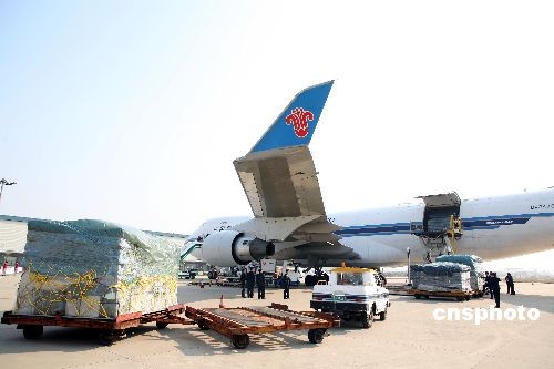由中國南方航空股份有限公司執(zhí)飛的兩岸首架直航貨運(yùn)包機(jī),于十二月十五日下午十五時(shí)從廣州白云國際機(jī)場起飛。中新社發(fā) 羅廣泰 攝