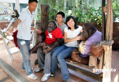 圖:中國游客在泰國與大猩猩快樂合影