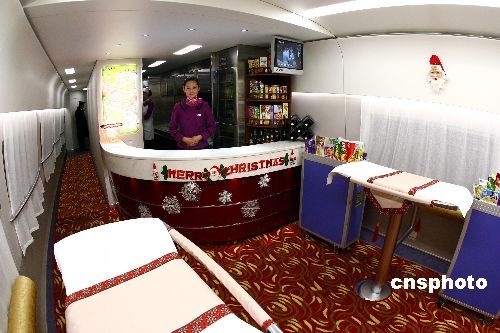 圖為臥鋪動(dòng)車(chē)組的車(chē)內(nèi)餐廳。