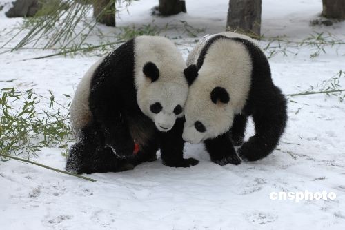 2008年1月,團團圓圓卿卿我我,面對鏡頭毫不避嫌。中新社發(fā) 衡毅 攝