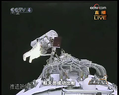 NO 2.中國太空行走第一步:2008年9月25日,中國航天員翟志剛、劉伯明、景海鵬搭乘“神舟七號”載人飛船,在酒泉衛(wèi)星發(fā)射中心通過長征二號F型火箭發(fā)射升空。9月27日16:39,身穿國產(chǎn)“飛天”艙外航天服的翟志剛打開艙門,執(zhí)行我國首次太空出艙任務(wù),成功取回放置在艙外的試驗(yàn)品。9月28日傍晚,神舟七號返回艙在內(nèi)蒙古主著陸場成功著陸,中國第三次載人航天任務(wù)圓滿完成。