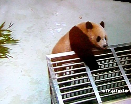 大陸贈(zèng)臺(tái)大熊貓“團(tuán)團(tuán)”“圓圓”二十三日晚間抵達(dá)臺(tái)北的新家——臺(tái)北市立動(dòng)物園新光特展館。圖為大熊貓“圓圓”狀態(tài)良好,在欄舍里頑皮地爬上爬下。