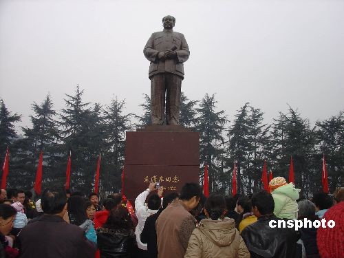 12月26日清晨,在韶山毛澤東廣場(chǎng),從中國各地趕來的民眾懷著對(duì)毛主席的思念和對(duì)未來的祝福,齊唱《東方紅》紀(jì)念毛澤東誕辰115周年。中新社發(fā) 肖前輝 攝