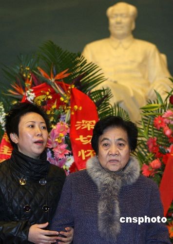 12月26日毛澤東115周年誕辰日,70歲的原中共中央政治局候補委員、國務院副總理吳桂賢(右)到位于北京天安門廣場的“毛主席紀念堂”敬獻鮮花。