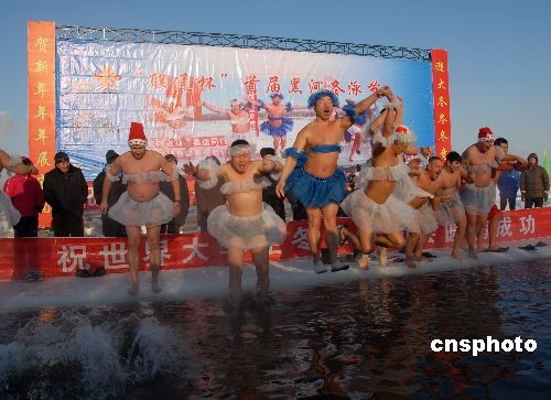 12月27日,首屆黑河市冬泳節(jié)開幕暨中俄健兒冬泳賀新年表演活動(dòng)在界河黑龍江舉行。黑河市百余名冬泳健兒與來自俄羅斯布拉戈維申斯克市的20余名冬泳隊(duì)員進(jìn)行了中俄雪地足球?qū)官、滑稽冬泳和跳水技巧表演等。旨在打造黑河地域特色旅游文化活?dòng)品牌,大力營造“兩節(jié)”期間喜慶和諧的文化氛圍。如今,中俄冬泳表演活動(dòng)已經(jīng)成為展示黑河、宣傳黑河的“名片”。