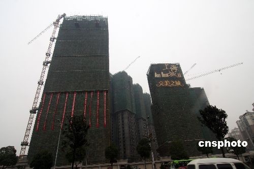發(fā)生建筑施工升降機掛籃墜落事故的長沙市井灣子韶山南路643號湖南東方紅建設(shè)集團上海城19棟項目部外景。中新社發(fā) 郭國權(quán) 攝