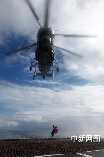 中新網(wǎng)“?凇迸12月28日電(記者 孫自法) 12月28日,中國海軍遠(yuǎn)洋護(hù)航艦艇編隊(duì)“?凇碧枌(dǎo)彈驅(qū)逐艦首次組織隨艦特戰(zhàn)隊(duì)員與艦載直升機(jī)進(jìn)行海上艦機(jī)協(xié)同滑降訓(xùn)練。