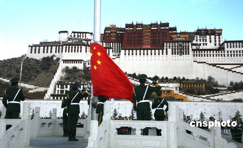 西藏:1月1日上午10點(diǎn),西藏自治區(qū)黨政軍及各屆人士在布達(dá)拉宮廣場(chǎng)舉行“升國(guó)旗唱國(guó)歌”儀式歡慶新年。中新社發(fā) 賈長(zhǎng)飛 攝