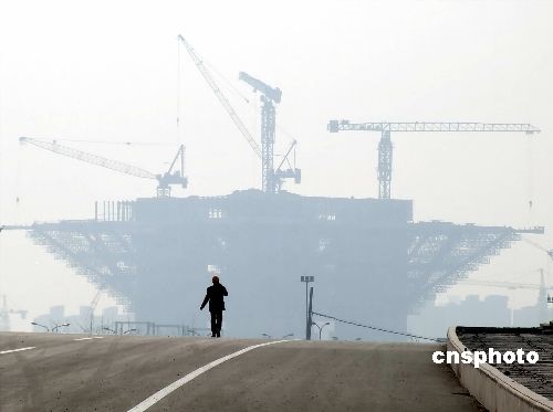 1月4日,2010年上海世博會中國館日前實現(xiàn)主體結(jié)構(gòu)封頂。作為上海世博會五大永久性建筑之一,中國館結(jié)構(gòu)封頂標志著世博會園區(qū)建設正在順利推進。中新社發(fā) 井韋 攝