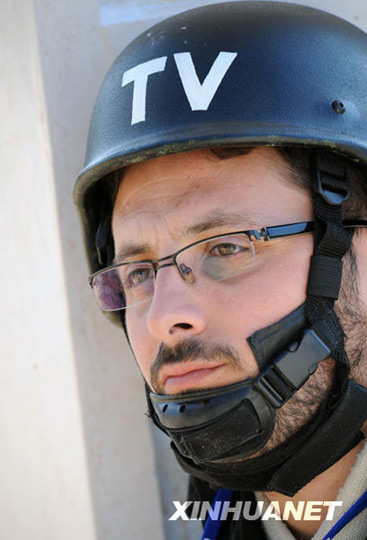圖:記者戴鋼盔穿防彈服在加沙進行報道(3)