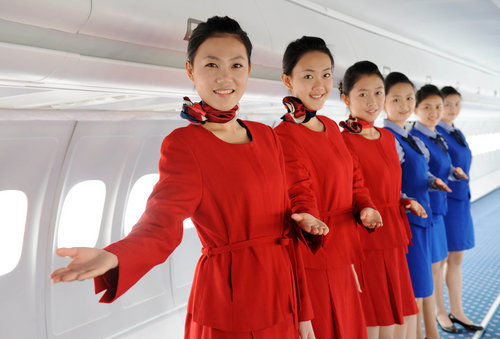 6名準(zhǔn)空姐把自己在課堂上所學(xué)過的知識統(tǒng)統(tǒng)演示了一遍。