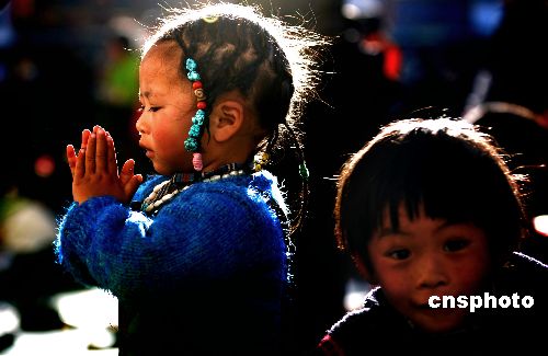 圖:拉薩大昭寺前虔誠(chéng)的藏族孩童