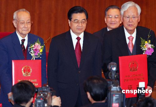 1月9日上午,中共中央、國(guó)務(wù)院在北京人民大會(huì)堂舉行2008年度國(guó)家科學(xué)技術(shù)獎(jiǎng)勵(lì)大會(huì),胡錦濤、溫家寶、李長(zhǎng)春、習(xí)近平、李克強(qiáng)出席大會(huì)并為獲獎(jiǎng)代表頒獎(jiǎng)。中共中央政治局委員、國(guó)務(wù)委員劉延?xùn)|在會(huì)上宣讀《國(guó)務(wù)院關(guān)于2008年度國(guó)家科學(xué)技術(shù)獎(jiǎng)勵(lì)的決定》。