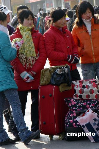 幾位“打工妹”結(jié)伴在鄭州火車(chē)站準(zhǔn)備一起返鄉(xiāng)過(guò)年,但“一票難求”愁壞了她們,顯得很沮喪。
