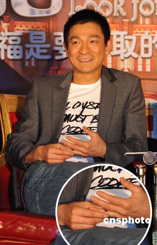 1月13日,由華誼兄弟出品、劉偉強(qiáng)執(zhí)導(dǎo)的浪漫愛情大片《游龍戲鳳》舉行官網(wǎng)啟動儀式。劉德華出席活動時左手無名指驚現(xiàn)環(huán)形戒指,他在接受訪問時還不停的玩撫戒指,多次摘掉又戴上。中新社發(fā) 李學(xué)仕 攝