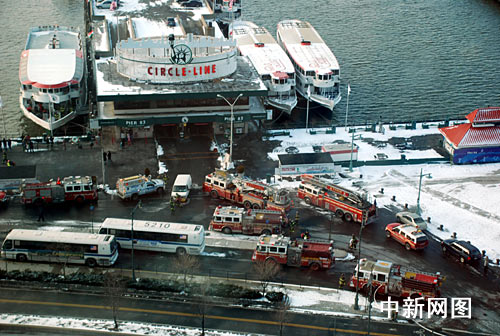 大批救援車輛聚集在哈德遜河邊的碼頭,等待救援落水乘客。 中新社記者 魏晞 攝