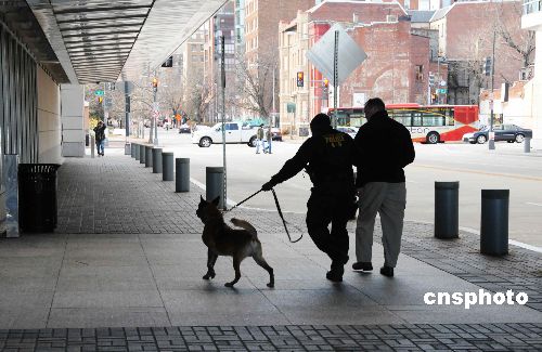 當(dāng)選為美國(guó)第四十四任總統(tǒng)的奧巴馬,將于三天后進(jìn)駐白宮。由于情報(bào)顯示安全形勢(shì)嚴(yán)峻,美國(guó)負(fù)責(zé)保衛(wèi)總統(tǒng)安全的美國(guó)K-9特種警察加緊在該區(qū)域內(nèi)嚴(yán)格戒嚴(yán),四處搜尋,力爭(zhēng)新總統(tǒng)就職平安。圖為美國(guó)K-9特種警察在白宮附近街道巡邏。