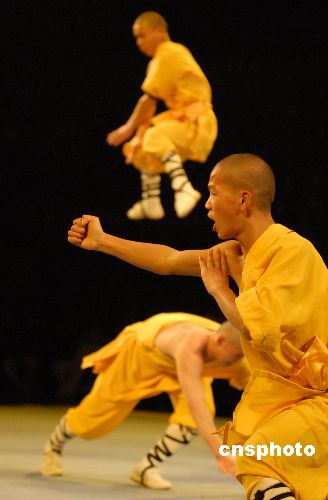 圖為少林武僧表演功夫八段錦。中新社發(fā) 楊洋 攝