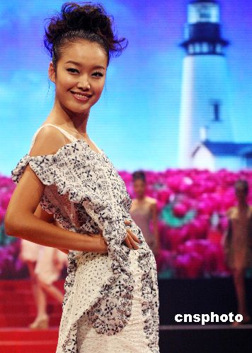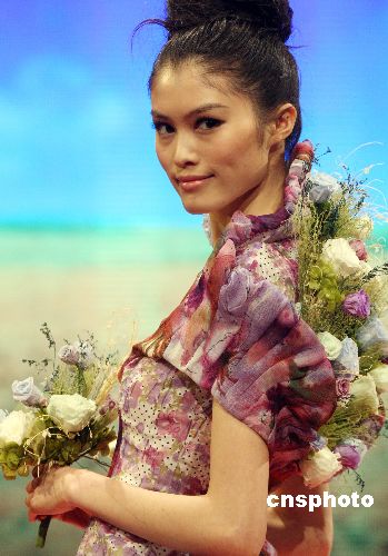 圖為2008新絲路世界模特大賽冠軍盧心彤展示日本設(shè)計(jì)師作品。