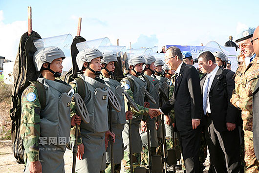 潘基文視察維和部隊(duì) 專程接見中國掃雷官兵(3)