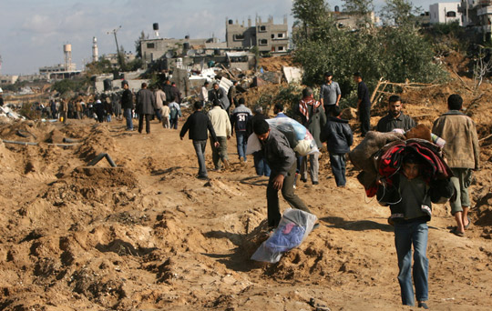 自1月18日以巴雙方分別宣布;鸷螅由尘用耖_始陸續(xù)返回加沙城。因以色列連日空襲,加沙已經(jīng)是斷壁殘垣。