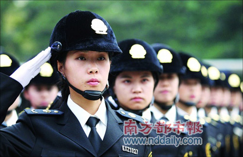 騎士頭盔、靴子、緊身衣,22名女隊(duì)員身著新制服集結(jié)宣誓,開(kāi)電瓶車(chē)上路巡街,沿途引起市民驚艷注目。昨日(2009年1月20日)上午,佛山首支城管執(zhí)法女子特勤中隊(duì)掛牌上路,佛山欲借此提升打造城管品牌形象。