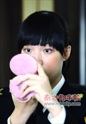 城管女子特勤中隊(duì)在全省尚屬首支,昨起在季華路、嶺南大道和祖廟路一帶巡邏值勤,除對(duì)亂擺賣(mài)、懸掛、張貼、涂寫(xiě)、堆倒和占道經(jīng)營(yíng)、破壞綠化等違法違規(guī)現(xiàn)象勸阻糾正外,還負(fù)責(zé)城管宣傳及重大活動(dòng)的現(xiàn)場(chǎng)保障。據(jù)執(zhí)法局介紹,不處罰將是女子隊(duì)的一大特色,執(zhí)法中將以教育勸導(dǎo)為主。