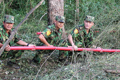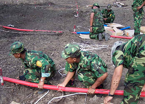 掃雷爆破筒是我軍在中越邊境大掃雷中研制而成并逐漸改進后的裝備。其研制者當時受竹子的啟發(fā),提出了研制“掃雷爆破筒”的創(chuàng)意:先打通竹關節(jié),將炸藥灌進竹筒,縱向伸進雷區(qū)引爆地雷。經某工兵團在國外多次掃雷實踐證明,使用其進行爆破掃雷,進度比傳統(tǒng)爆破手段提高數(shù)倍。