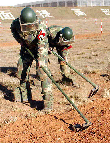 多功能掃雷耙是我掃雷一線人員在實地掃雷過程中發(fā)明的。其發(fā)明者從豬八戒的釘耙開始琢磨:地雷通常采用壓發(fā)裝置起爆,達到殺傷目的,而從側(cè)面受力則不會引爆。如果有類似的釘耙,就能把地雷鉤出。“多功能掃雷耙”就是基于此發(fā)明的。該掃雷耙看似簡單,但它具有排雷簡單,實用,輕便,制造成本低等特點。