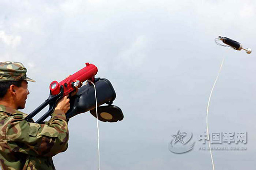 由我國(guó)自主研發(fā)采用空氣推進(jìn)技術(shù)生產(chǎn)的,它在一只0.5L氣瓶?jī)?nèi)灌入20Mpa的壓縮空氣,其射程為50~90m,具有體積小,重量輕,安全可靠,攜帶方便等特點(diǎn),得到掃雷作業(yè)手的鐘愛。