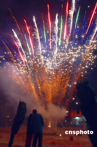 1月26日中國農(nóng)歷新春到來之時(shí),北京市民燃放煙花爆竹,度過不眠之夜,爆竹聲聲過春節(jié)。中新社發(fā) 鄒憲 攝