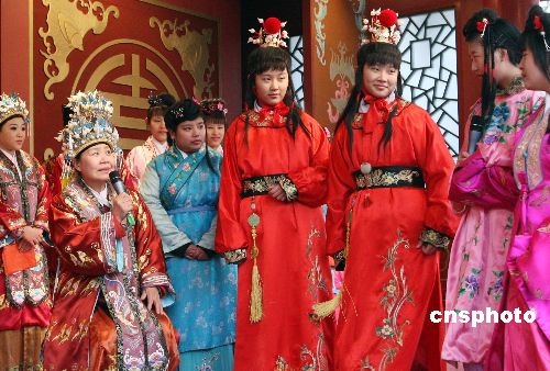 1月27日 (大年初二),北京大觀園十四屆紅樓廟會吸引眾多假日游客,本屆廟會以弘揚中華傳統(tǒng)文化為宗旨,以展現(xiàn)紅樓文化為主題,呈現(xiàn)出改革開放30年來新北京、新宣武的精神風(fēng)貌。廟會主要活動有“元妃省親”、“寶黛成婚”“賈母賀壽”、紅樓文化展覽--木版年畫展、紅樓夢人物火花展以及紅樓美食展示區(qū)等。圖為在紅樓廟會上由一對雙胞胎扮演的“賈寶玉”富有戲劇色彩。中新社發(fā) 錢興強 攝