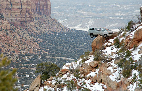 中新網(wǎng)1月29日電 據(jù)英國媒體報(bào)道,美國一名男子近日開車差點(diǎn)墜入科羅拉多國家保護(hù)區(qū)附近的山崖,所幸被一大塊巨石攔住,汽車一半懸空在170英尺高的峭壁上,場面極其驚險(xiǎn),救援人員及時(shí)趕到,該男子死里逃生。