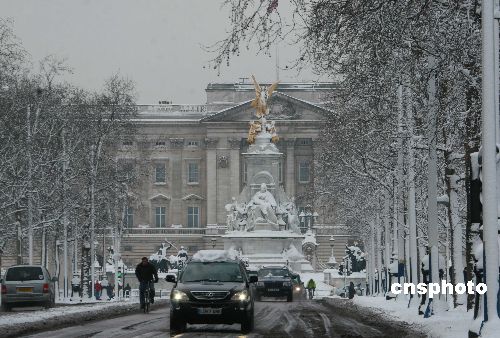 英國自1日下午起開始降雪,至2日早晨已經(jīng)成為十八年最嚴(yán)重的暴雪。惡劣天氣使公共交通陷入停頓或癱瘓,首都倫敦的公交車停駛,地鐵線也陷入混亂狀況。圖為大雪中的英國王宮白金漢宮。
