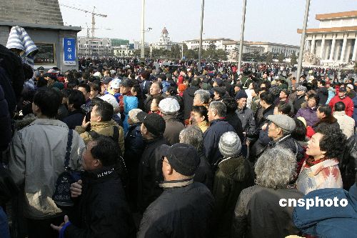 正陽門原計劃三日十二時至十六時免費開放,但早九點已有兩、三千市民在門口繞圈排起了長龍。人群中,有年過八旬的老太太,有從京郊乘車近兩小時趕來的市民。據(jù)一位市民透露,還有人凌晨三點即來排隊,不但可拿到中國人民解放軍入城式六十周年紀念券、捷足先登城樓看展覽,更能穩(wěn)得當(dāng)日僅發(fā)放一百份的珍貴紀念品。