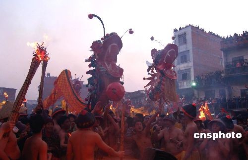 2月5日,廣西南寧賓陽縣舉行當(dāng)?shù)貍鹘y(tǒng)的“炮龍節(jié)”,整個(gè)縣城一百多條巨龍狂舞,震耳欲聾的鞭炮響徹一晚,四十多萬人參與狂歡。被譽(yù)為“中國(guó)狂歡節(jié)”的賓陽縣炮龍節(jié)是中國(guó)國(guó)家級(jí)非物質(zhì)文化遺產(chǎn),節(jié)日當(dāng)天主要街道上群龍勁舞,鞭炮齊鳴。每條炮龍長(zhǎng)達(dá)三四十米,被視為新年神物,以“龍牌”、鑼鼓、八音開路,花籃火把相隨,眾大漢赤膊上陣,沿街游舞。臨街的商家住戶和游客把一串串鞭炮丟往龍身上炸龍,以祈求來年風(fēng)調(diào)雨順,富貴平安。