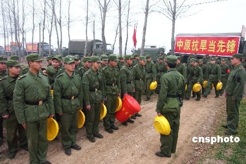 2月6日,駐河南許昌某部隊出動官兵1000余人,組成數(shù)支抗旱突擊隊,趕到災(zāi)情最為嚴(yán)重的許昌市許昌縣蔣李集鎮(zhèn)、河街鄉(xiāng)一帶抗旱救災(zāi),力爭把災(zāi)害降到最低程度。