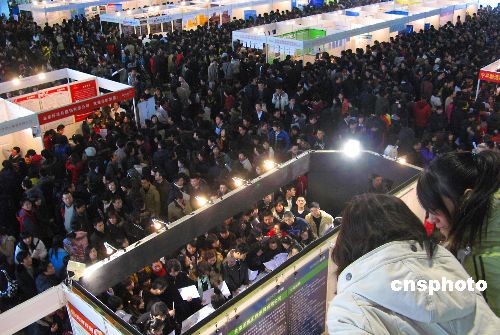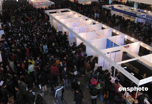 2月7日,一年一度的北京最大規(guī)模招聘盛會——“北京‘共創(chuàng)未來’大型人才招聘會”在中國國際展覽中心舉行。本次大會由北京多家人才聯(lián)合主辦,設(shè)立展位近千個,展會開放四個展館,2號館為IT、電子、通訊專館,3號館為建筑房地產(chǎn)、現(xiàn)代制造業(yè)、生物醫(yī)藥及廣告?zhèn)髅綄p^,4號館、8B號館為綜合招聘館。在京10萬高校畢業(yè)生前往應(yīng)聘。