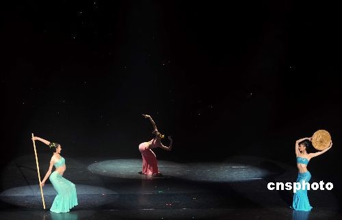 圖為俏皮詼諧的傣族三人舞“邵多麗”,贏得觀眾喝彩與掌聲。中新社發(fā) 張煒 攝