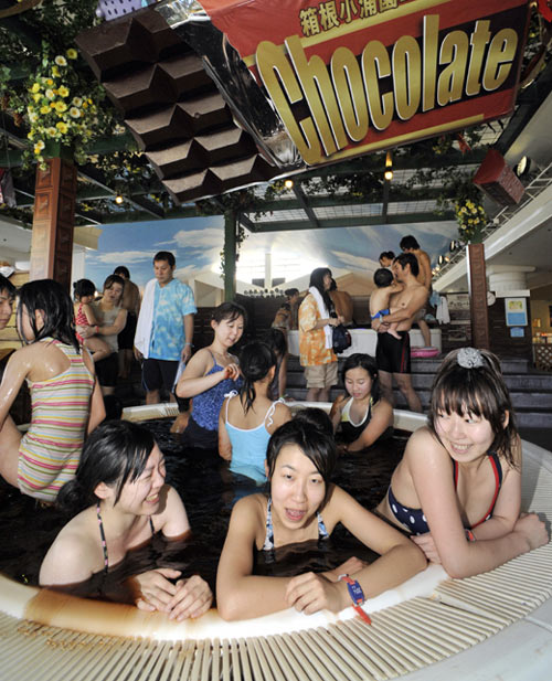 2月8日,游客們?cè)谌毡旧衲未ǹh享受奇特的“巧克力浴”,以此慶祝即將到來的情人節(jié)。