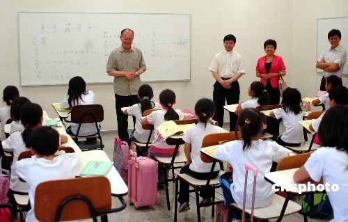 當(dāng)?shù)貢r(shí)間二月六日下午,率領(lǐng)“文化中國(guó)四海同春”藝術(shù)團(tuán)到巴西慰問僑胞的國(guó)僑辦副主任趙陽,在圣保羅參觀圣本篤中文學(xué)校,向師生們了解中文教學(xué)情況,鼓勵(lì)同學(xué)們學(xué)好中文,為中巴兩國(guó)的交流作貢獻(xiàn)。中新社發(fā) 劉以謙 攝