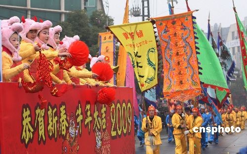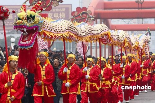 2月9日下午,1000多名農(nóng)民組成的民間舞龍隊在浙江諸暨城里進(jìn)行踩街鬧元宵活動。當(dāng)日是農(nóng)歷正月十五元宵節(jié),來自諸暨農(nóng)村的布龍隊、板龍隊、調(diào)龍隊等9支舞龍隊進(jìn)城鬧元宵,吸引了數(shù)萬名市民觀看。中新社發(fā) 袁云 攝