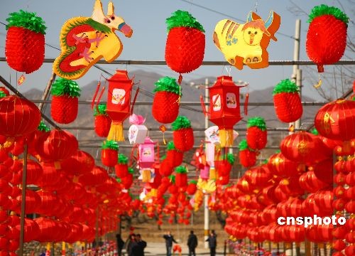 2月9日,紅廟村紅燈籠走廊。當(dāng)日,北京市懷柔區(qū)紅廟村隆重舉辦“北京九渡河首屆元宵燈會”,從入村路口到進村街道直至村內(nèi)的大小巷道,萬盞花燈,營造出一片燈的海洋。