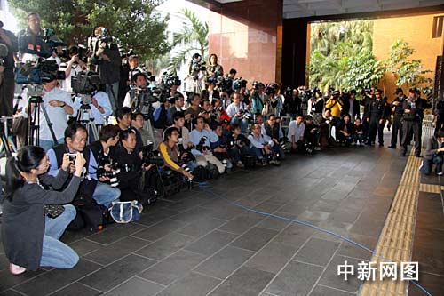 大批各路媒體記者集結(jié)在臺(tái)北地院門口候著吳淑珍出來(lái)。中新社記者 陳立宇 攝